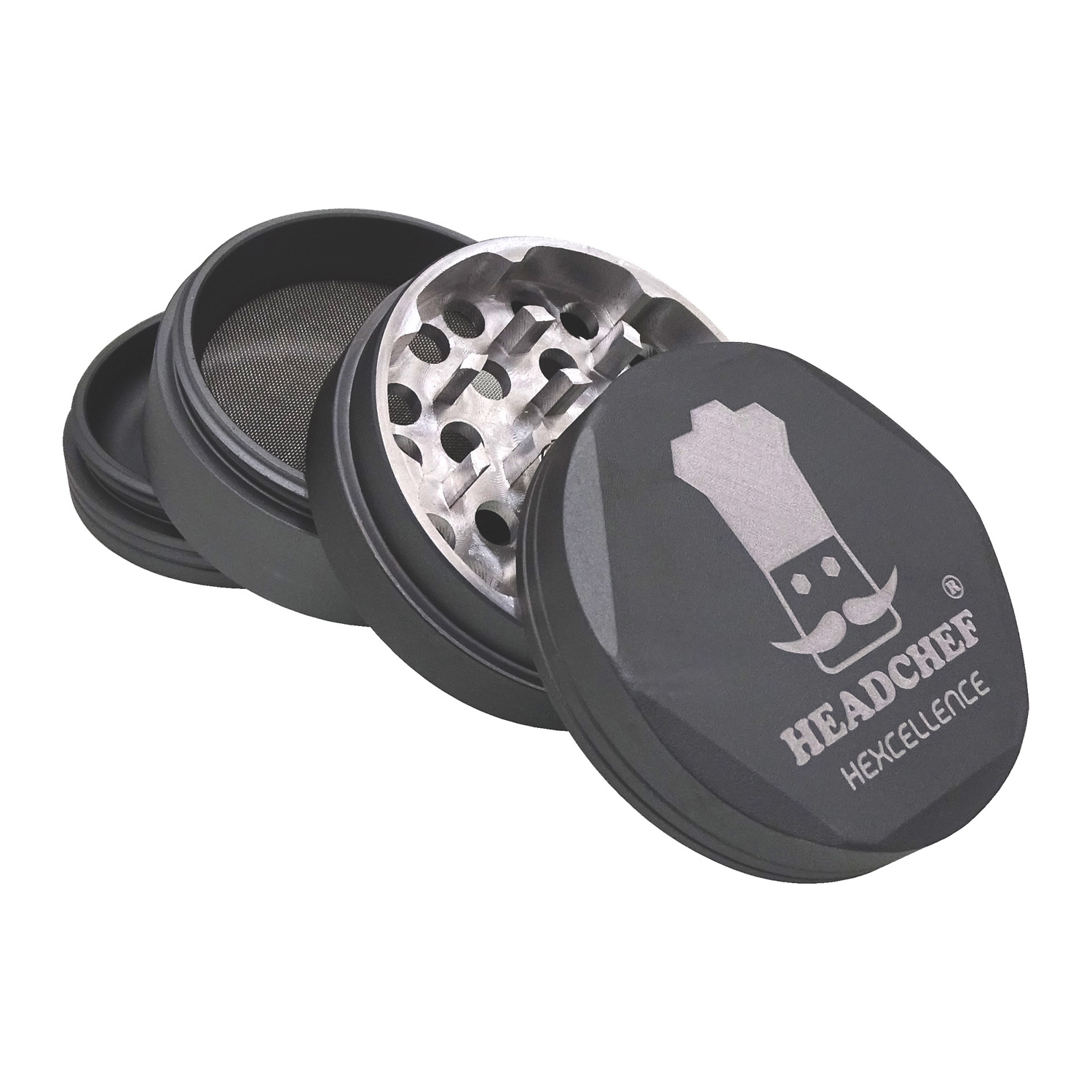 Headchef HEXCELLENCE Silk Touch 55mm 4 Part Grinder - Charcoal
