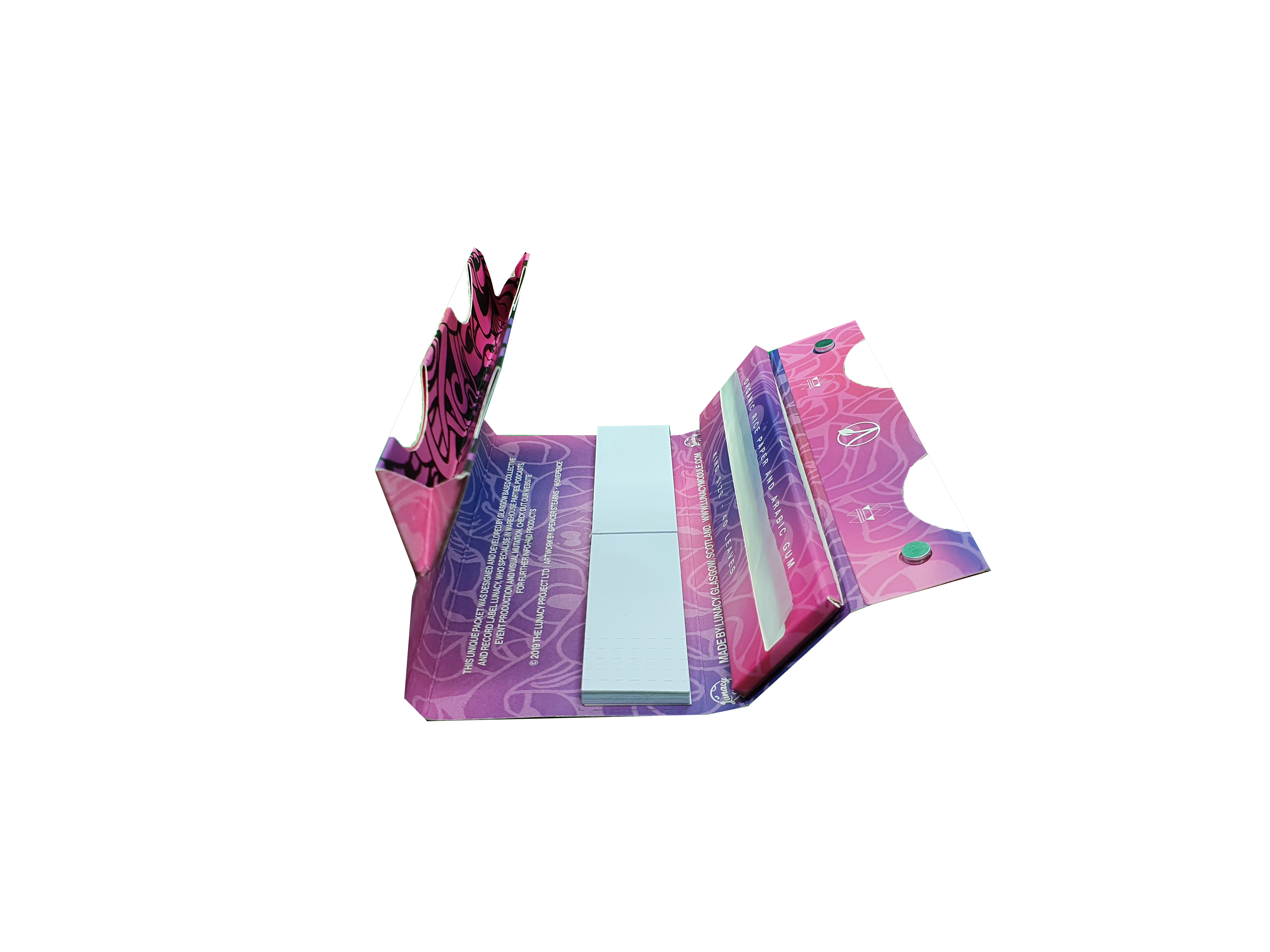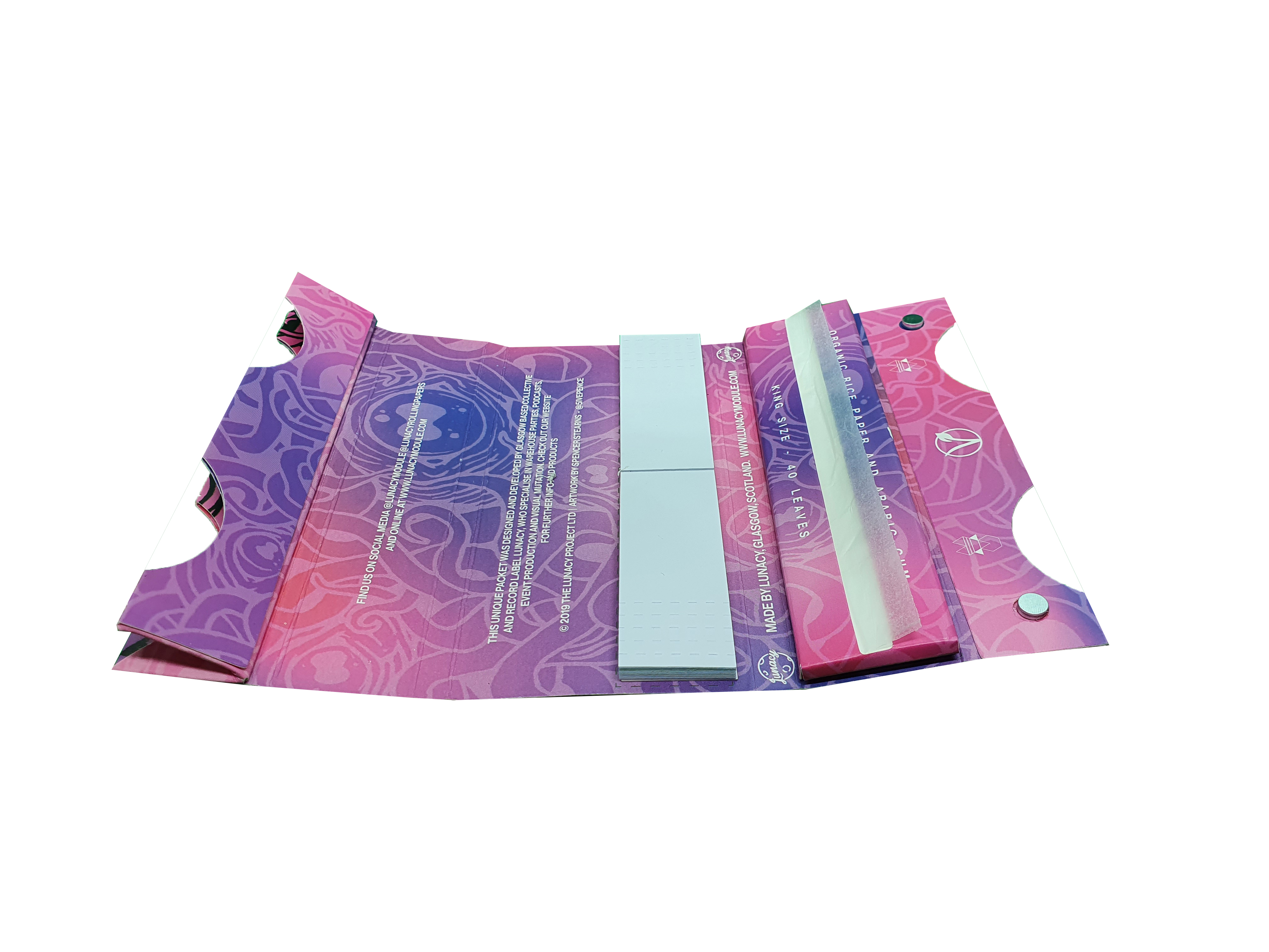 Lunacy papers contain everything you will need to keep rolling those perfect smokes on the go. Organic rice paper, tips and the pack folds neatly into a magnetically sealed rolling tray!