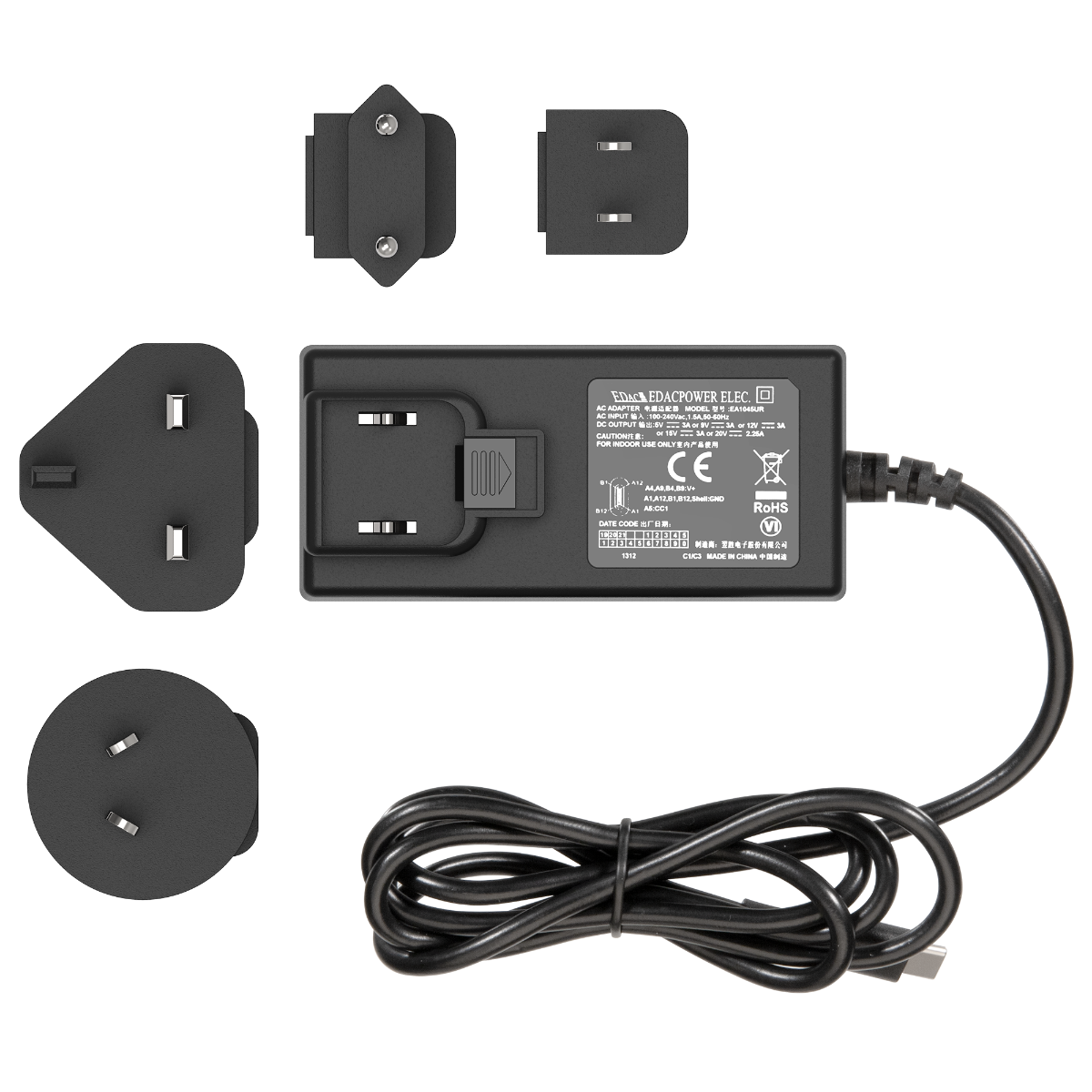 Incl. 4 interchangeable mains plugs